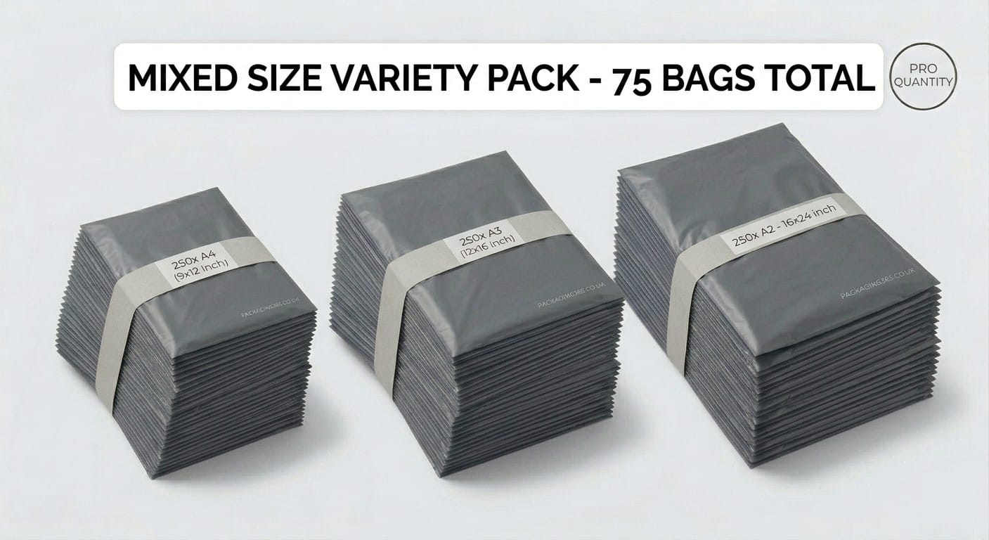 What’s Included in Your Mixed Grey Mailing Bags Variety Pack?